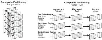 The concept of range-list partitioning is similar to that of the other composite partitioning method, range-hash, but this time you specify that the sub-partitions are to be list rather than hash. Specifically, after the CREATE TABLE ... PARTITION BY RANGE clause, you include a SUBPARTITION BY LIST clause that follows similar syntax and rules as the PARTITION BY LIST clause. The individual PARTITION and SUBPARTITION clauses, and optionally a SUBPARTITION TEMPLATE clause, follow.