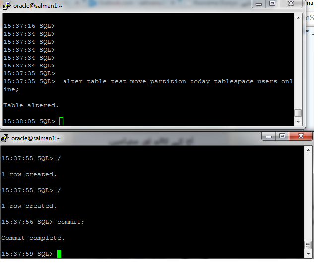 SQL> ALTER TABLE test1 MOVE PARTITION test1_PART1 ONLINE UPDATE INDEXES;
